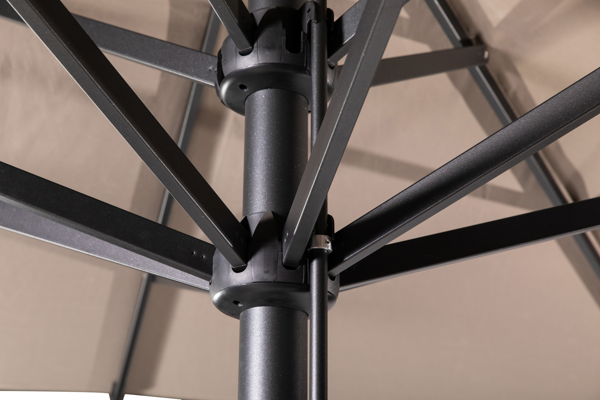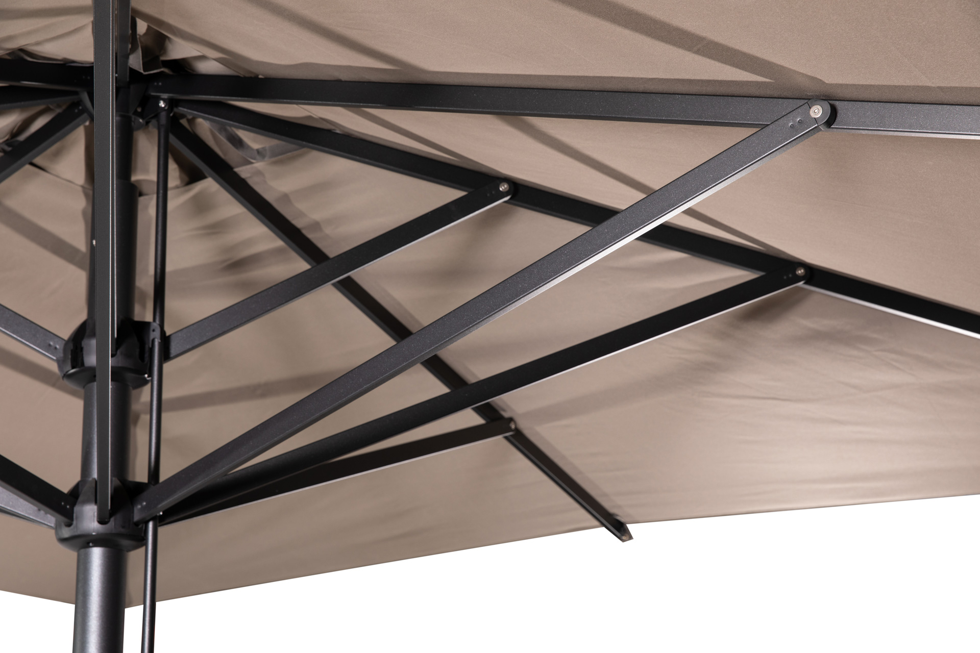 גג השמשייה עשוי מבד דרלון איכותי, עמיד במים ודוחה קרני UV, המבטיח שמירה על צבע לאורך זמן ועמידות גבוהה בתנאי מזג האוויר המשתנים. הבד מותאם לשימוש יומיומי ללא דאגות למשך שנים ארוכות.