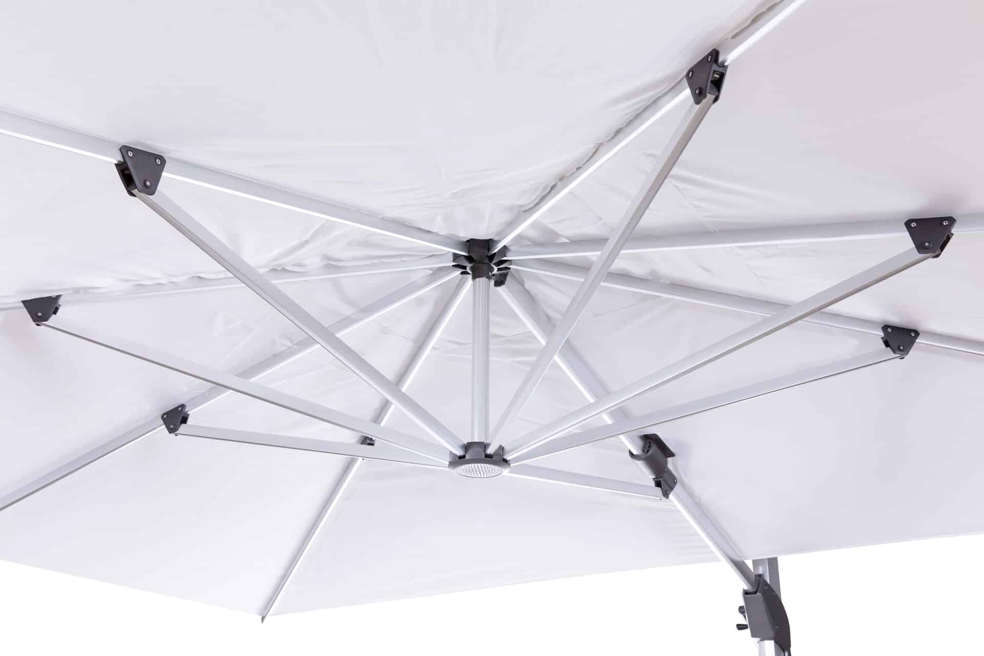 שמשית אואזיס עשויה שלד אלומיניום אליפטי בצבע אפור בהיר.
